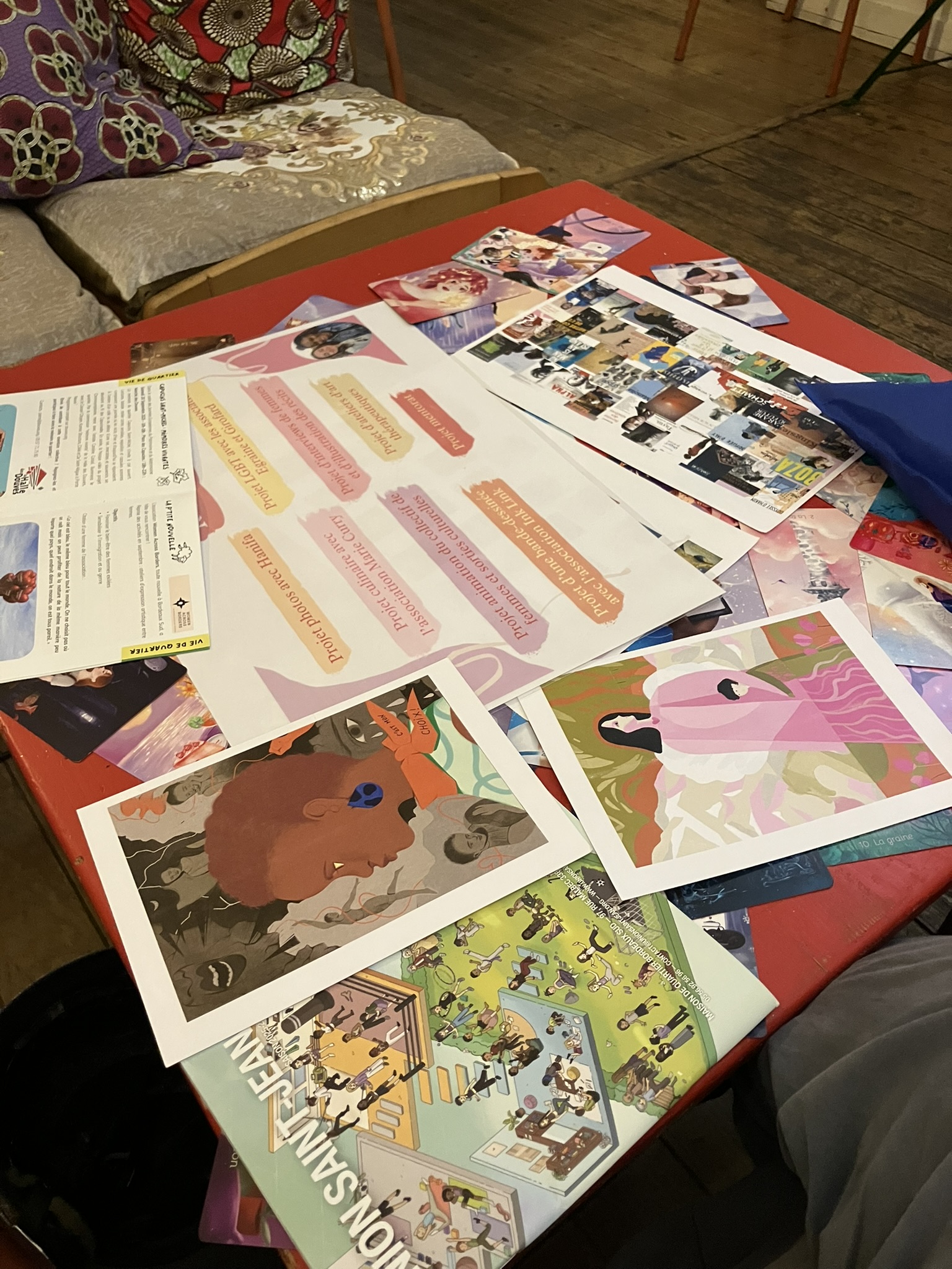 Pour préparer la fin d’année 🎉, nous avons organisé des ateliers de création de cartes de vœux 💌, destinées à être distribuées lors de nos ateliers et proposées à prix libre sur nos stands ✨